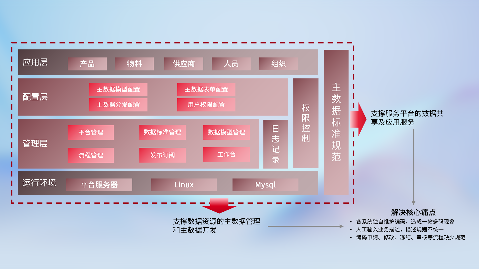 支持企业合规:集中管理和标准化的主数据治理确保数据使用符合行业法规和标准,,降低因数据不一致或不合规导致的法律和财务风险。。